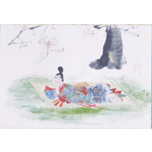 玉村方久斗画幅「在原業平桜下仮睡図」