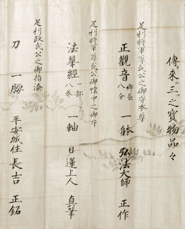 弘法大師の正観音、日蓮の法華経、長吉の刀一腰の3点。