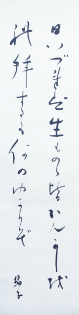 「日いづれば生ものゝ皆ひがしを礼拝するも何のゆかりぞ 晶子」大正3年1月発行の『夏より秋へ』(金尾文淵堂)所収の歌。この頃の書は少ない。