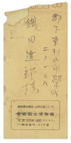 昭和30年代。封書の6枚のうち4枚は鶴岡の自作の詩。葉書の冒頭には「今仕事のことで三崎にきています。一夕お祝いの会をもちたいと曹君などと相談していました・・」曹君は朝鮮人画家の曹良奎と思われる。