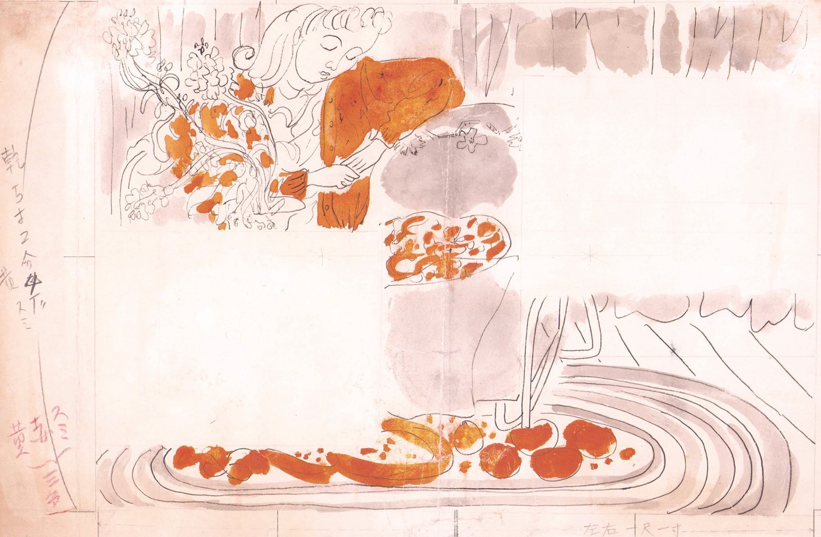 紙に墨筆・水彩